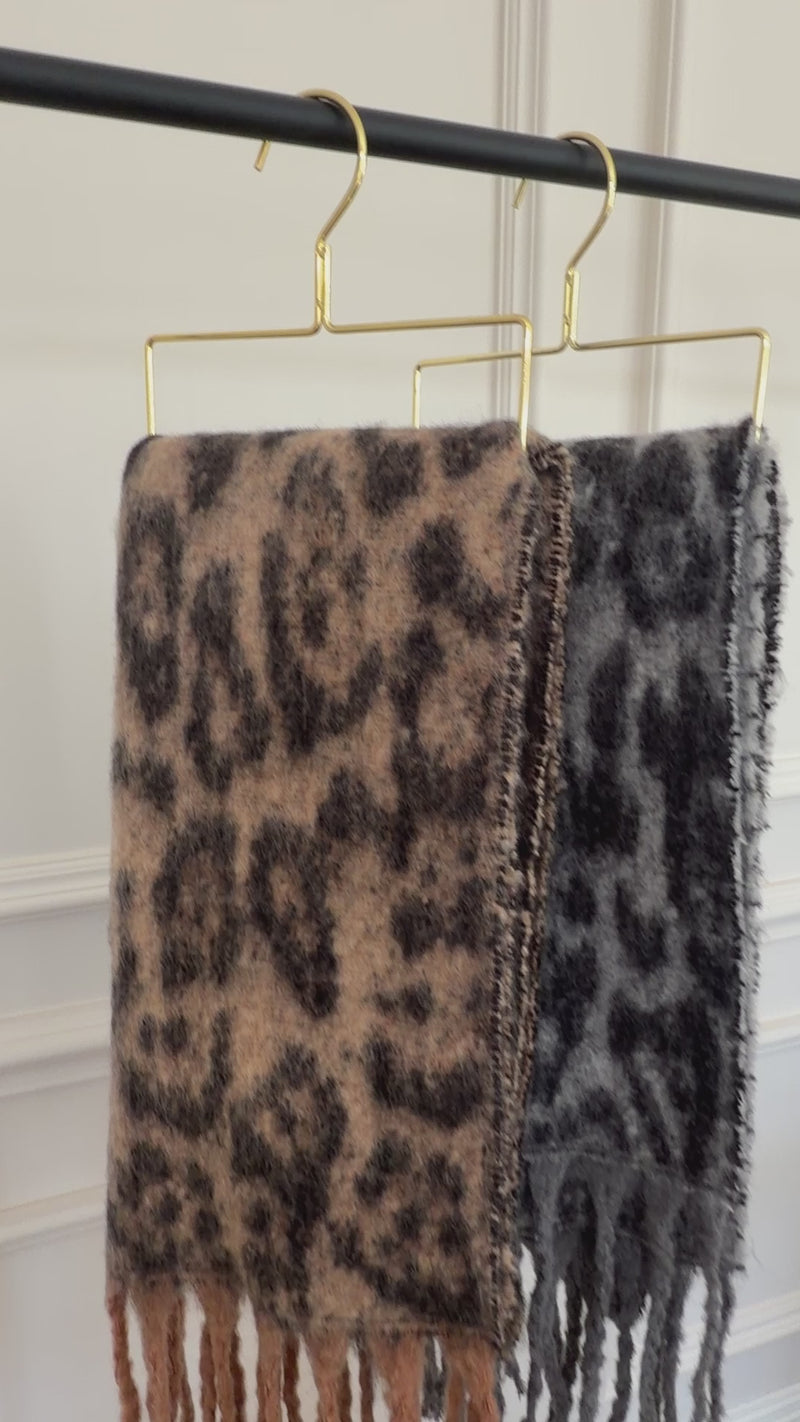 BROWN FLUFFY LEOPARD PRINT OVERSIZED BLANKET SCARF SHAWL WRAP