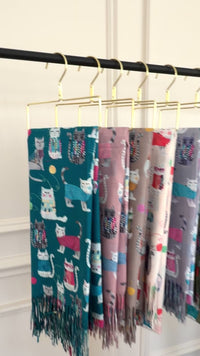 - Soft feel stylish cat pattern scarf (plain on reverse side).
