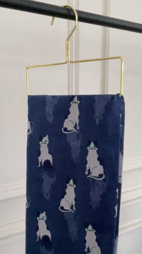 - Womens large and long Navy Blue art deco style cat print scarf.