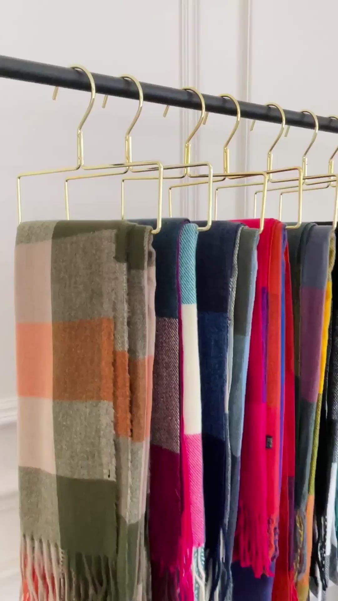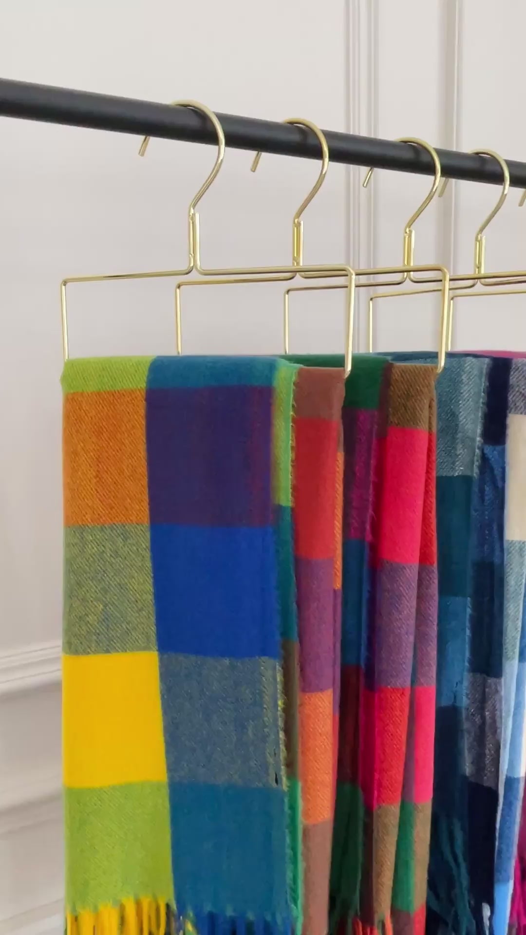 PINK BLUE CHECKED WOOL RAINBOW BLANKET SCARF OVERSIZED WINTER SHAWL WRAP