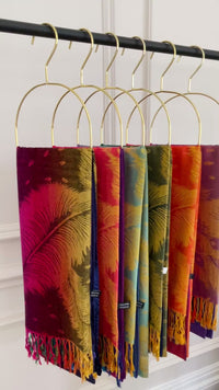 LARGE PURPLE RAINBOW FEATHER AND LEAF PRINT PASHMINA SHAWL SCARF