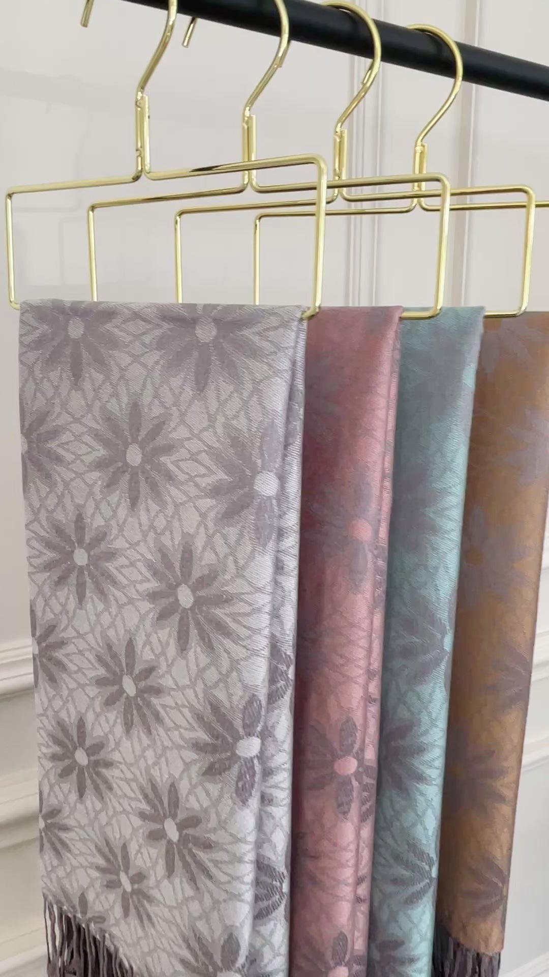 LARGE ROSE GOLD FLORAL DAISY PRINT GEOMETRIC REVERSIBLE PASHMINA SHAWL SCARF