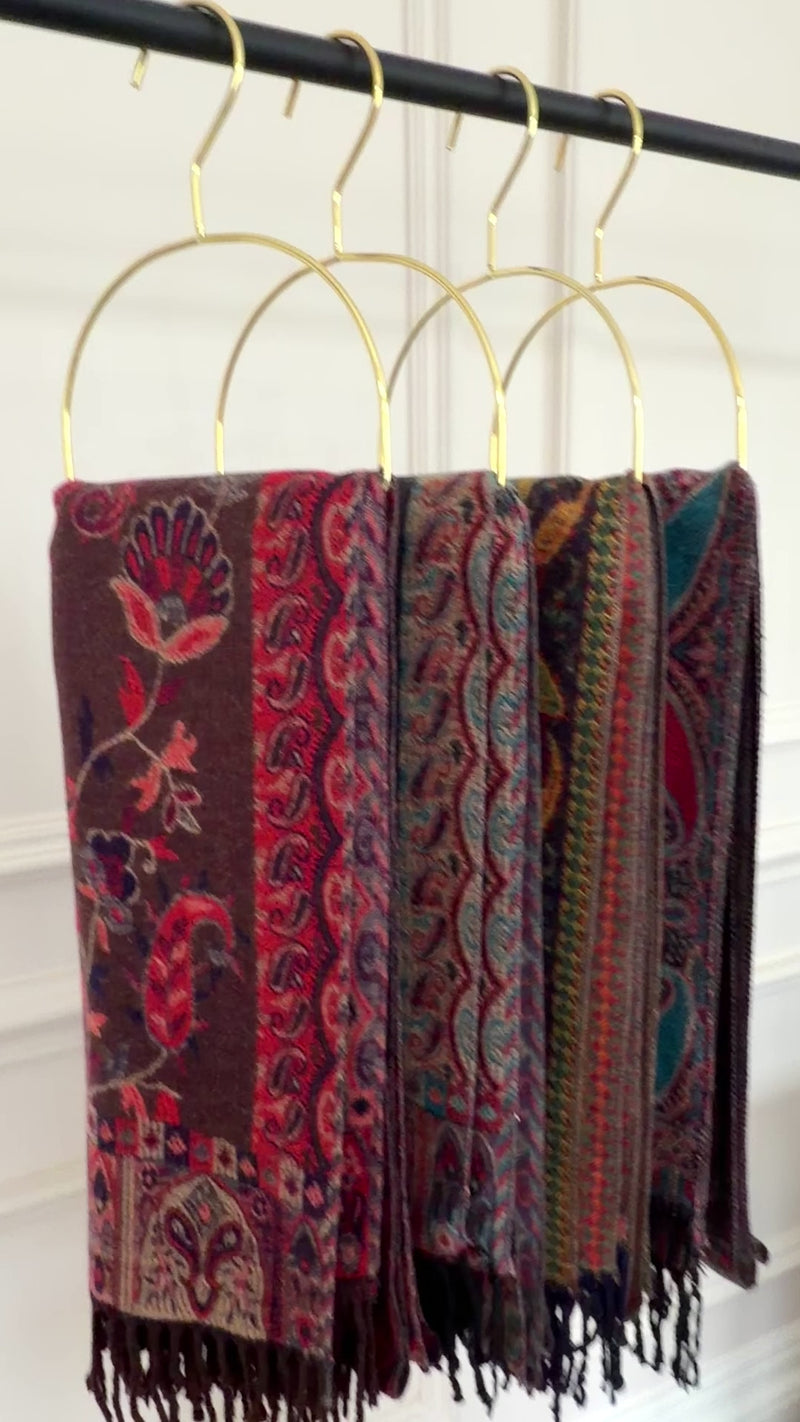 Elevate your winter wardrobe with this sophisticated reversible shawl wrap. Showcasing traditional paisley and floral patterns in complementary tones, this generously sized piece offers dual styling options with its reversible design. Wear it as a cosy neck scarf, elegant wrap, or dramatic blanket shawl - perfect for both everyday warmth and formal occasions. The luxurious cashmere-feel fabric is breathable and lightweight, draping gracefully without heaviness. Finished with tassel detailing, this timeless accessory combines refined design with versatile wearability for any season.
