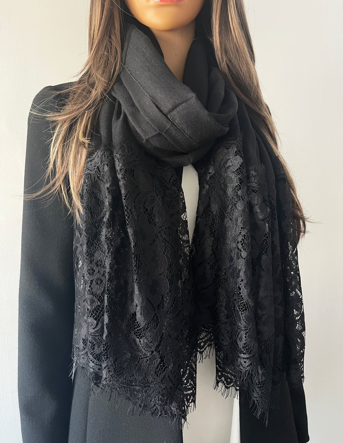 LARGE BLACK LACE DETAIL LIGHTWEIGHT SCARF