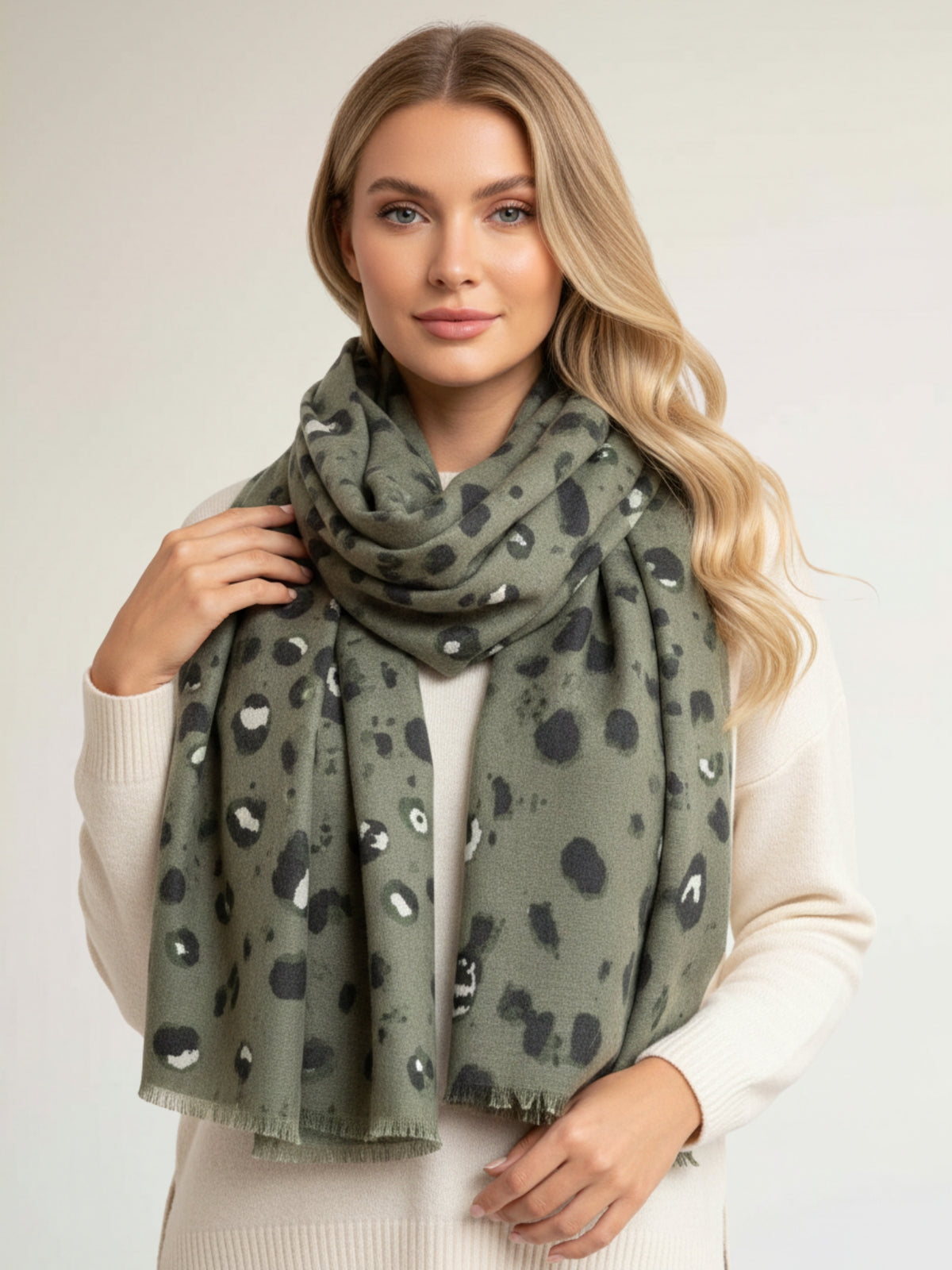 LARGE CREAM WOOL SPOTTY LEOPARD PRINT SCARF