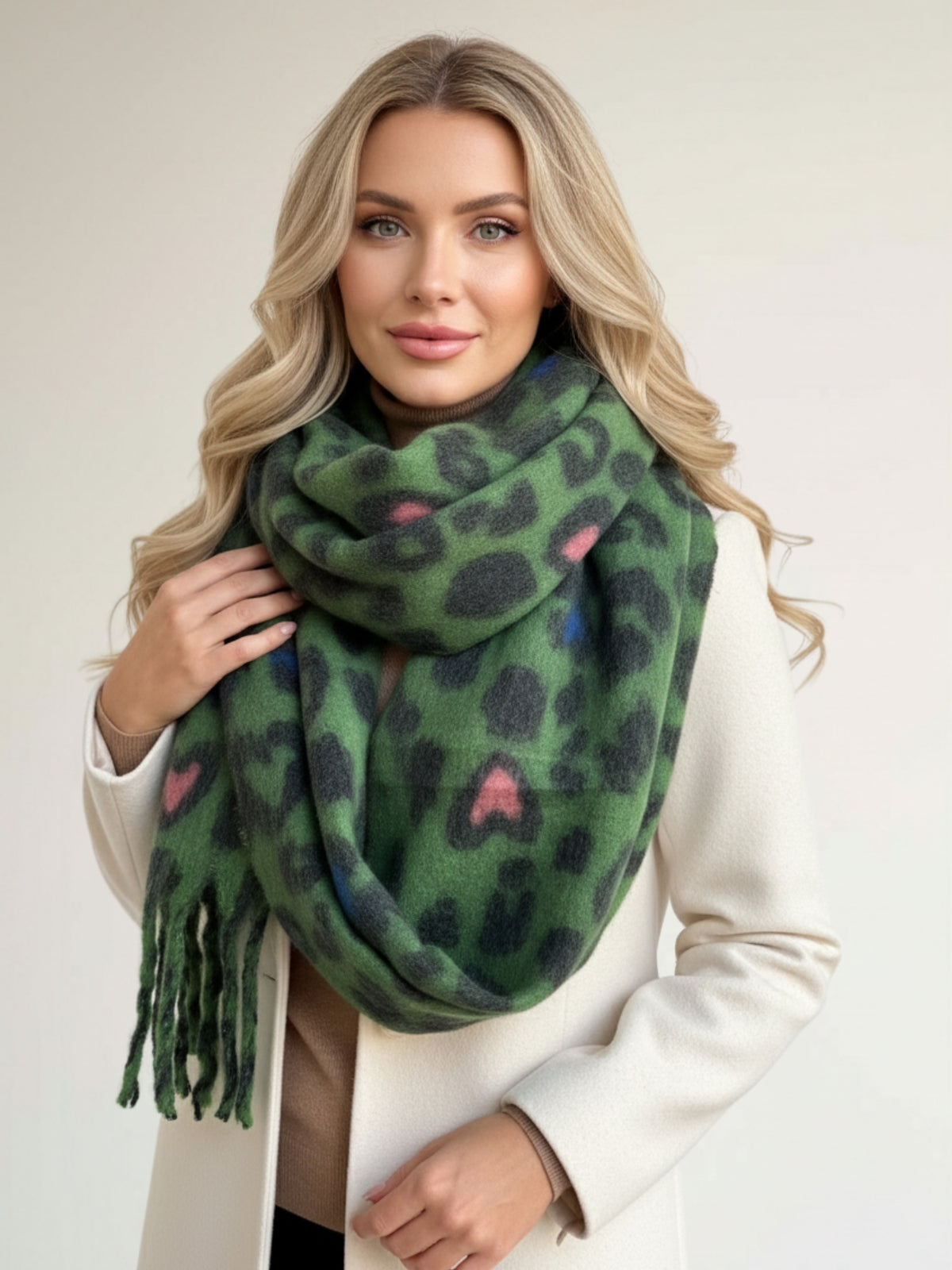 GREEN HEART LEOPARD PRINT OVERSIZED BLANKET SCARF SHAWL WRAP