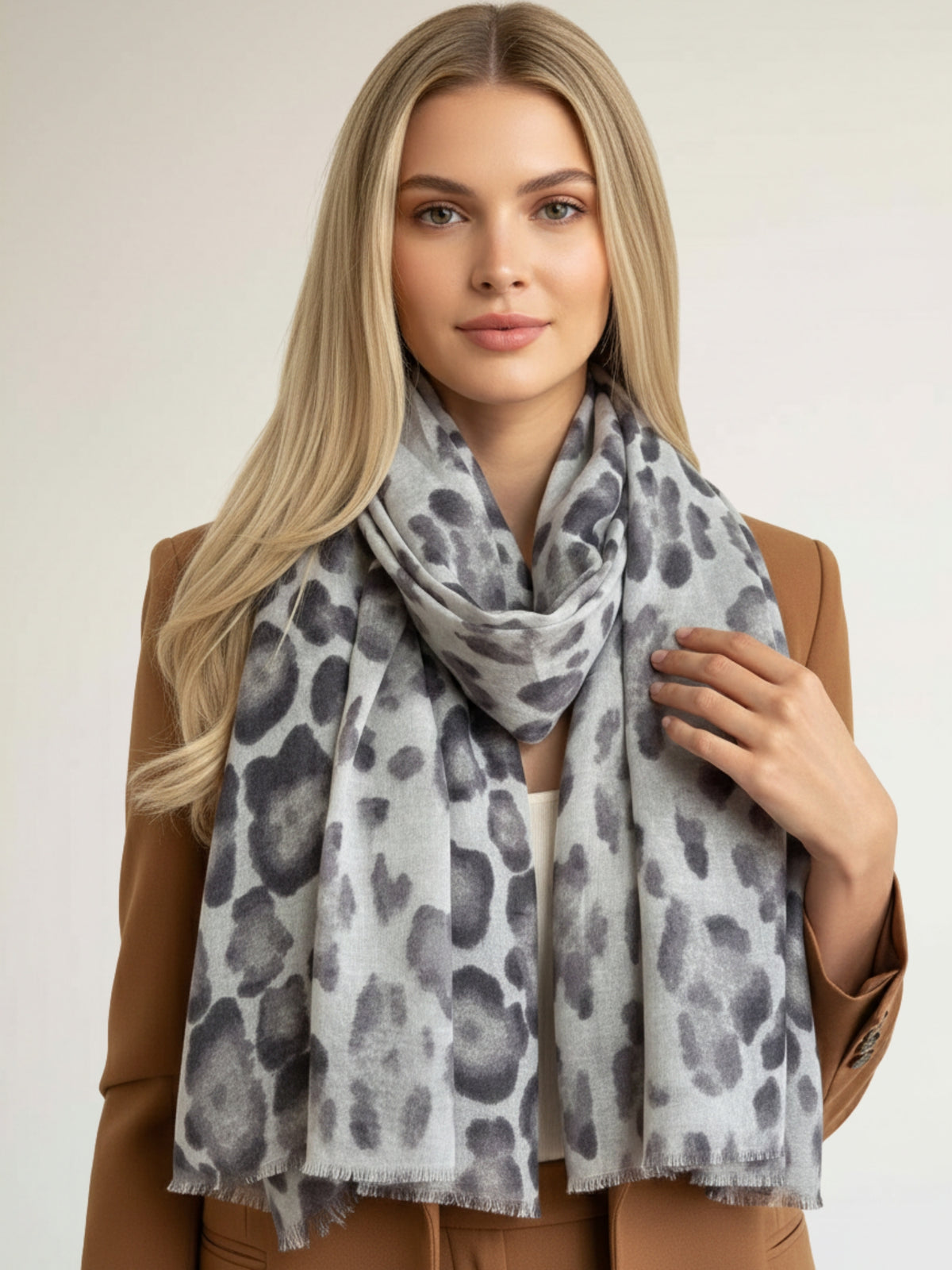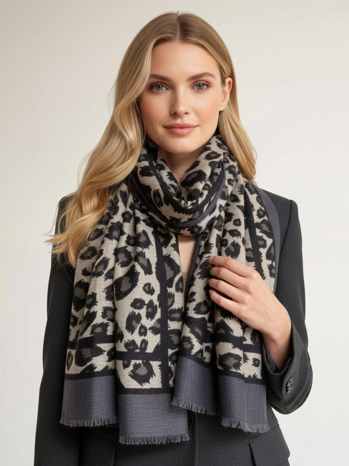 GREY COTTON BLEND CLASSIC LEOPARD PRINT SCARF