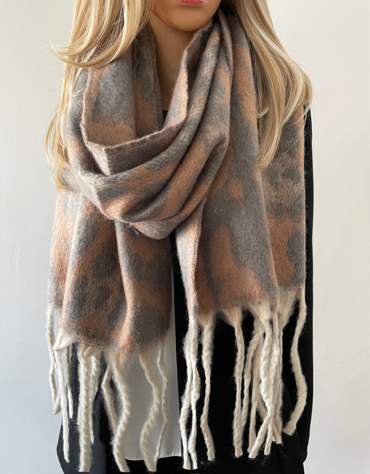 GREY FLUFFY LEOPARD PRINT OVERSIZED BLANKET SCARF SHAWL WRAP