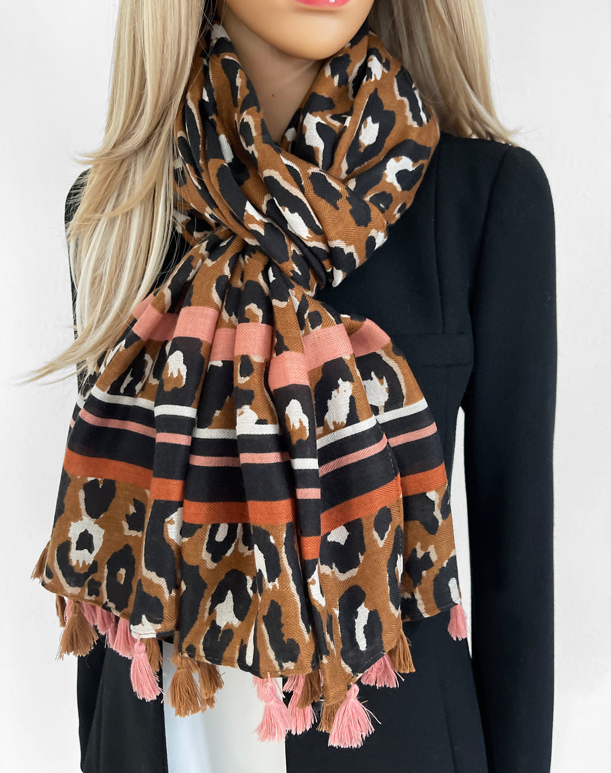 LARGE PINK STRIPE LEOPARD PRINT SCARF