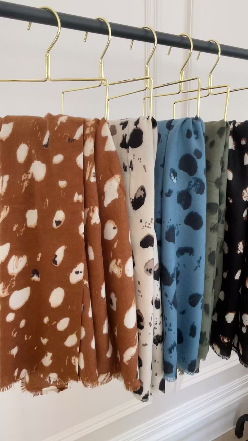 Elevate your style with our Large Blue Wool Spotty Leopard Print Scarf. The on-trend, wool mix animal print and softly frayed edges add a touch of sophistication. Versatile and lightweight, it can be worn in multiple ways, making it a must-have accessory. With its super soft feel and high-quality design, this scarf is both comfortable and chic.