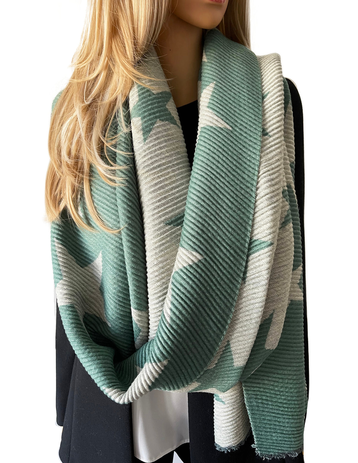 LARGE GREEN STAR THICK REVERSIBLE WINTER SHAWL BLANKET SCARF