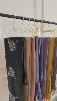 Add warmth and character to your winter collection with this reversible shawl wrap. Featuring a playful highland cow print in cheerful yellow and grey, it's crafted from a refined cashmere blend (20% cashmere, 80% viscose) that feels indulgently soft yet remains lightweight and breathable. At 180cm x 65cm, this oversized piece offers endless styling possibilities - drape it as a neck scarf, shoulder wrap, shawl, or blanket throw. The double-sided design means you get two colour options in one versatile piece, whilst tassel detailing adds a polished finish. The fabric's natural flow creates an elegant silhouette without bulk. A practical winter essential that's effortless to care for with a simple 30°C machine wash.