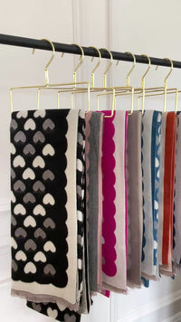 This large pink heart print scarf offers a luxurious blend of cashmere and viscose for exceptional softness and warmth. Its reversible design showcases contrasting light and dark pink tones, providing versatile styling options. Oversized with delicate fringed edges, it can be worn as a scarf, wrap, cape, shawl, or wearable blanket. Designed for both comfort and elegance, this plush winter shawl combines high quality materials with timeless style, making it an essential accessory for colder seasons.