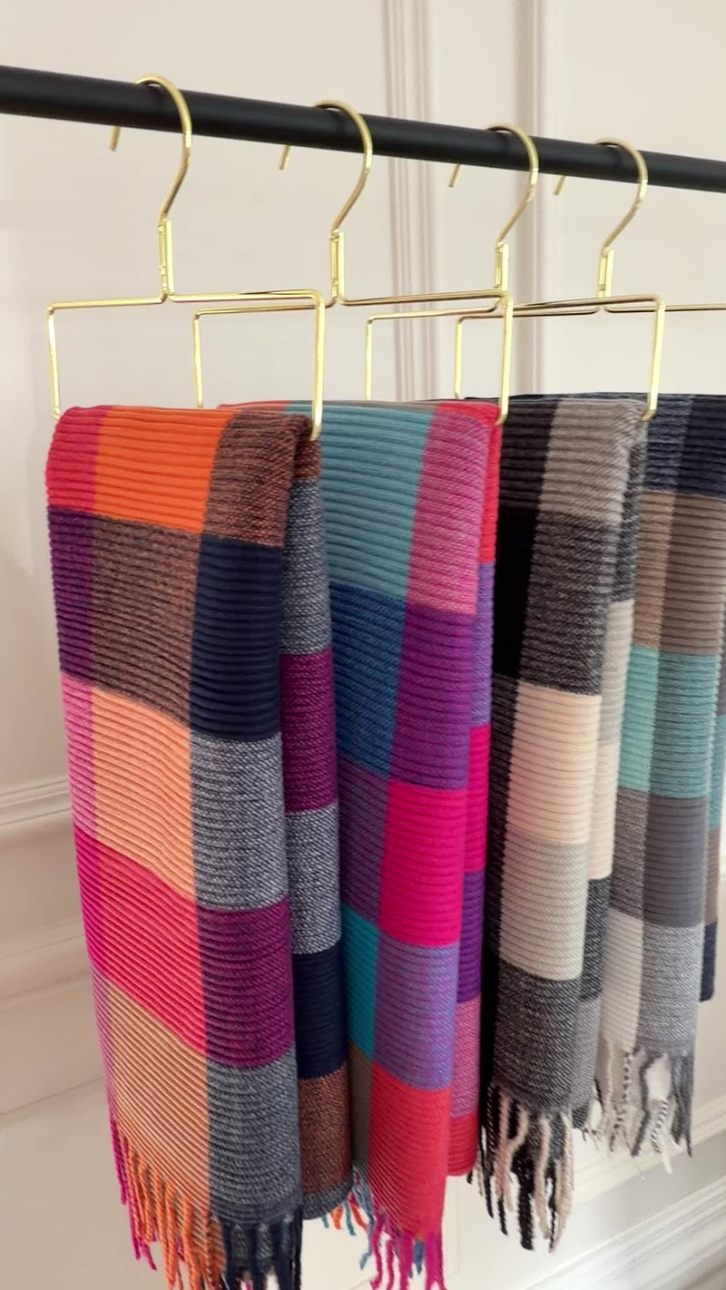 - Large and long, plush soft feel, Winter colour block scarf.