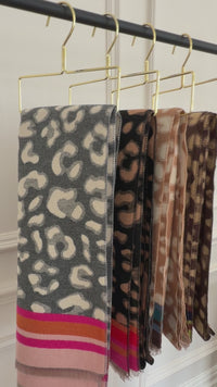 PINK CASHMERE BLEND COLOURFUL LEOPARD PRINT SCARF