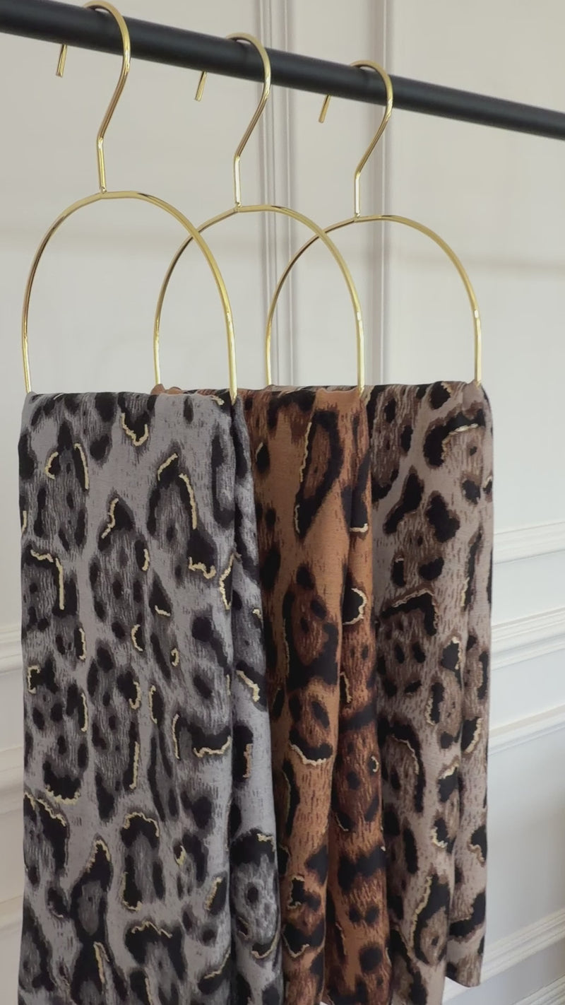 TAUPE COTTON BLEND METALLIC LEOPARD PRINT SCARF