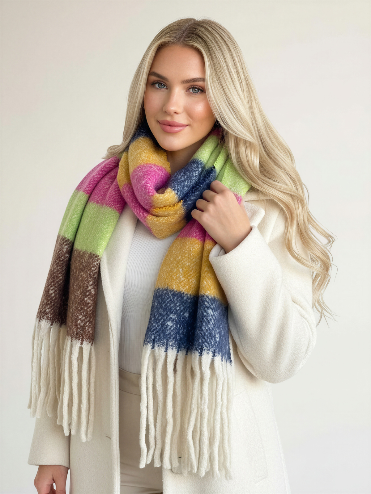 LIME STRIPED WOOL BLANKET SCARF OVERSIZED WINTER SHAWL WRAP