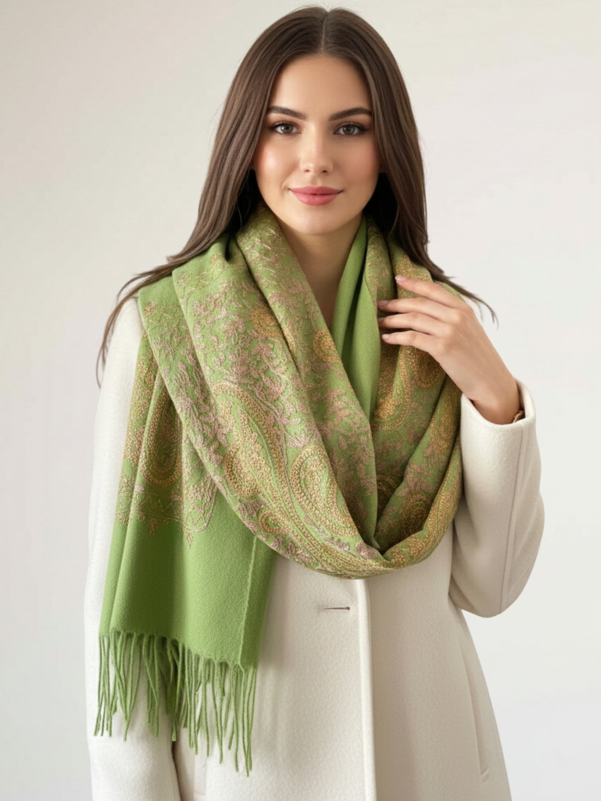 LARGE GREEN PAISLEY CASHMERE COTTON BLEND WINTER SHAWL BLANKET SCARF