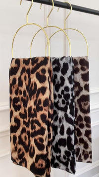 Add a wild touch to your look with this large brown leopard print scarf. Made from a soft and breathable cotton blend, it’s lightweight and effortless to wear. With softly frayed edges and a generous size, you can wrap it as a neck scarf, drape it as a shawl, or even style it as a chic sarong. The neutral brown tones make it a paw-sitively perfect accessory to mix and match with your favourite outfits.